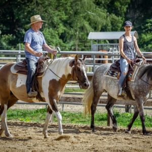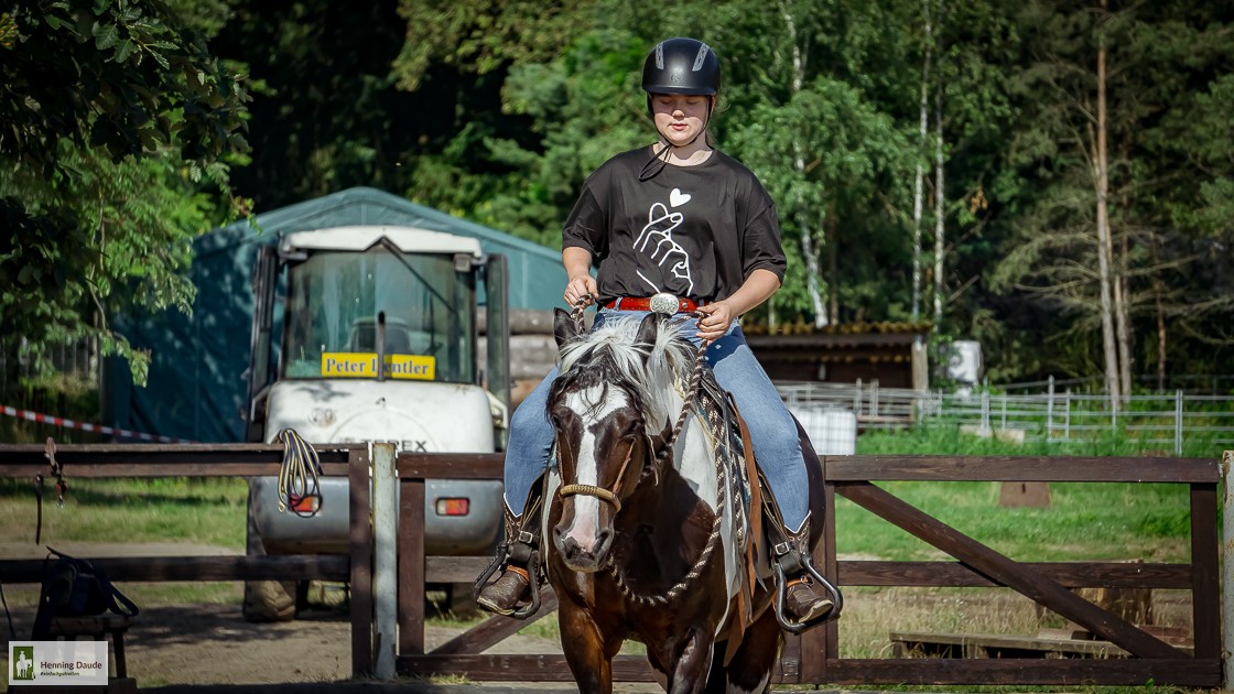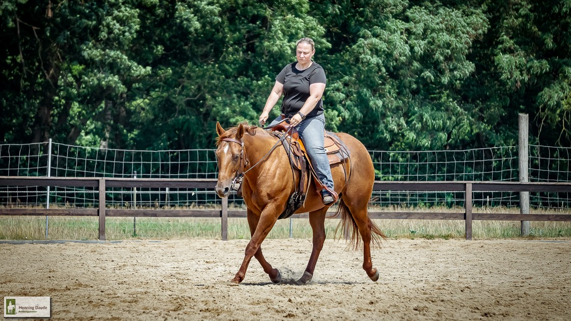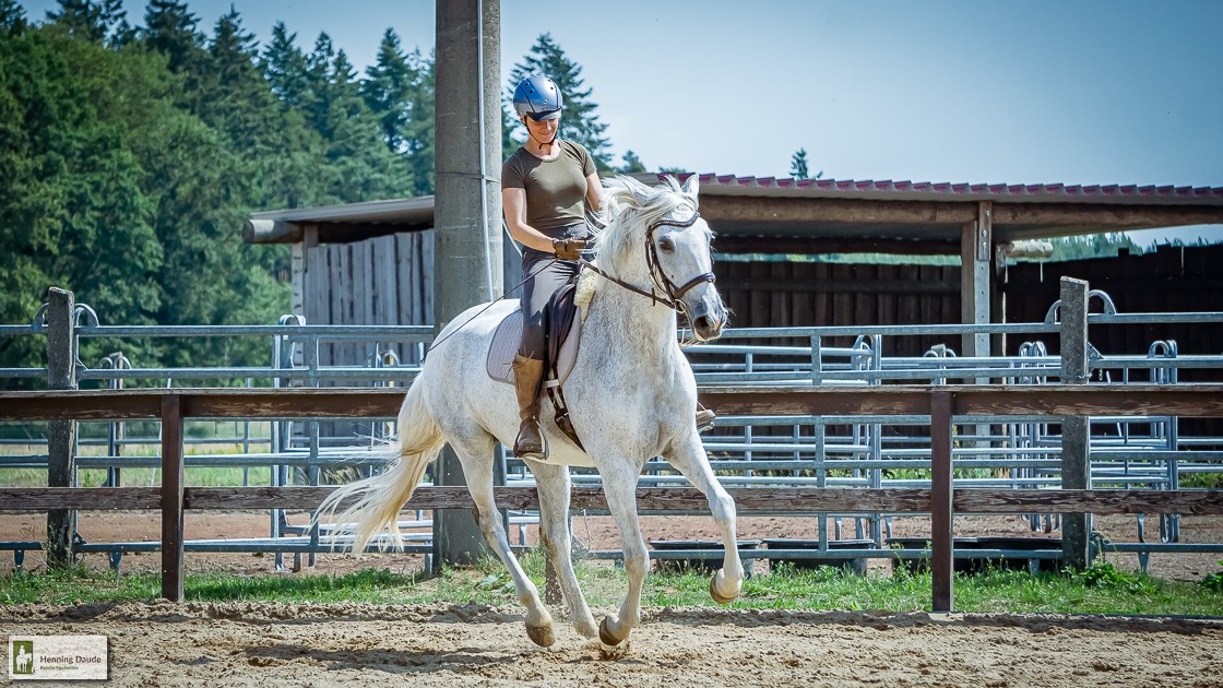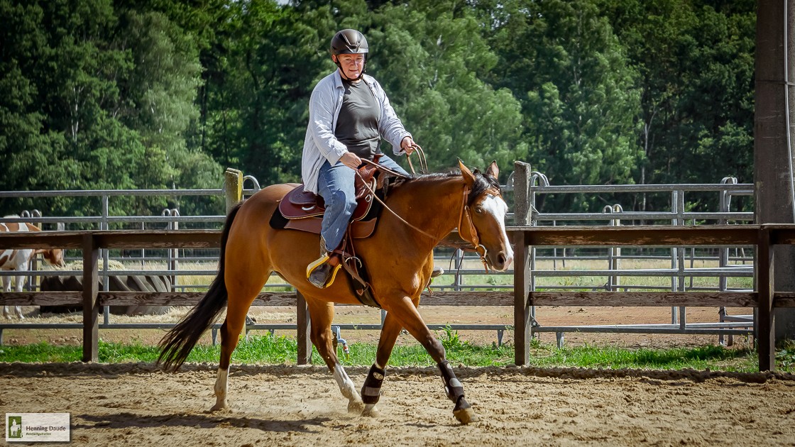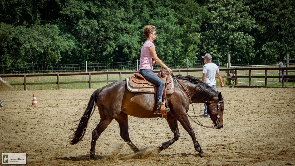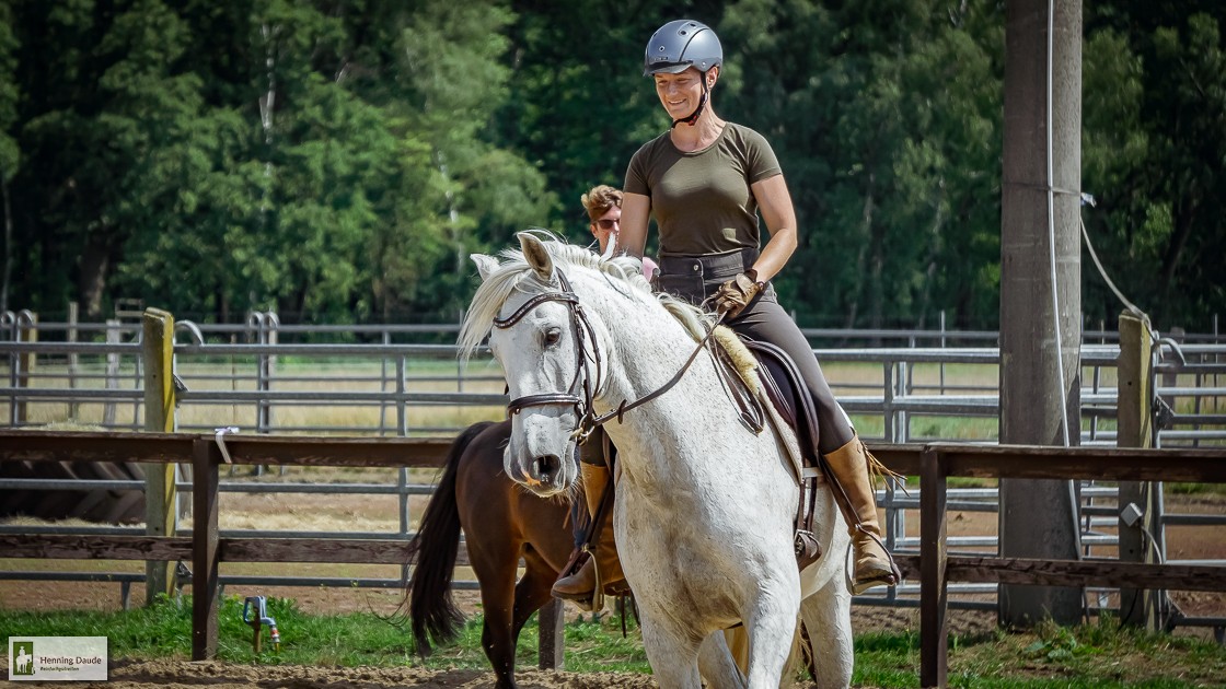 Inzwischen schon eine Tradition: kurz vor den Sommerferien treffen wir uns für drei Tage auf der idyllischen Banti-cow Ranch in den Brandenburger Wäldern, um uns ganz auf unsere Ponys zu konzentrieren. Bei wechselhaftem Wetter, das uns raus auf den Platz und wieder in die Halle scheuchte, haben wir die Pferde gebogen, sind Übergänge geritten und haben daran gearbeitet, dass die Ponys nicht durch die Zügelhilfen laufen. Bei bester Stimmung wurden wir hervorragend verpflegt und es ist mir immer wieder ein Vergnügen, dort meine Tage zu verbringen, danke!