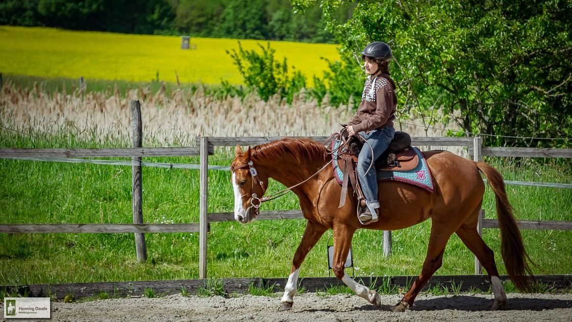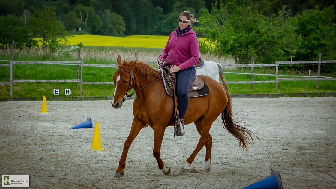 Nach dem Winterkurs im Januar gönnten wir uns diesmal beim Kurs bei der Reitschule von Claudia Lo Castro ein wenig Sonne auf dem Reitplatz. Dort haben wir insbesondere am Sitz und der Hilfengebung gearbeitet. Da wurde gestellt und gebogen sowie die Seitengänge verbessert. Die Übergänge haben wir verfeinert und die Gewichtshilfen geklärt und optimiert.