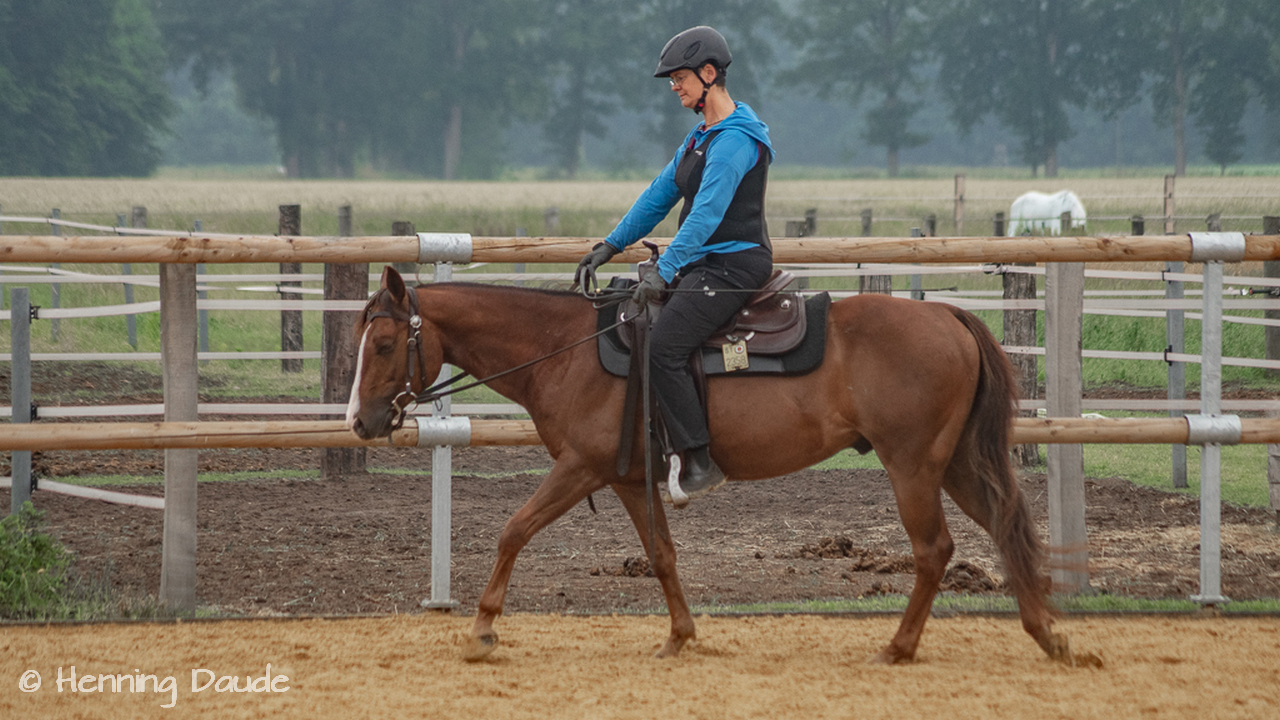 Mit Sonne, Regen, Wind und viel guter Laune starteten wir zum jährlichen Treffen im Münsterland bei „Starwood Stables“. Dort haben wir die Oberkörper aufgerichtet, sind einhändig geritten, haben gebogen und gestellt, die Hinterhand aktiviert und haben Übergänge geritten.