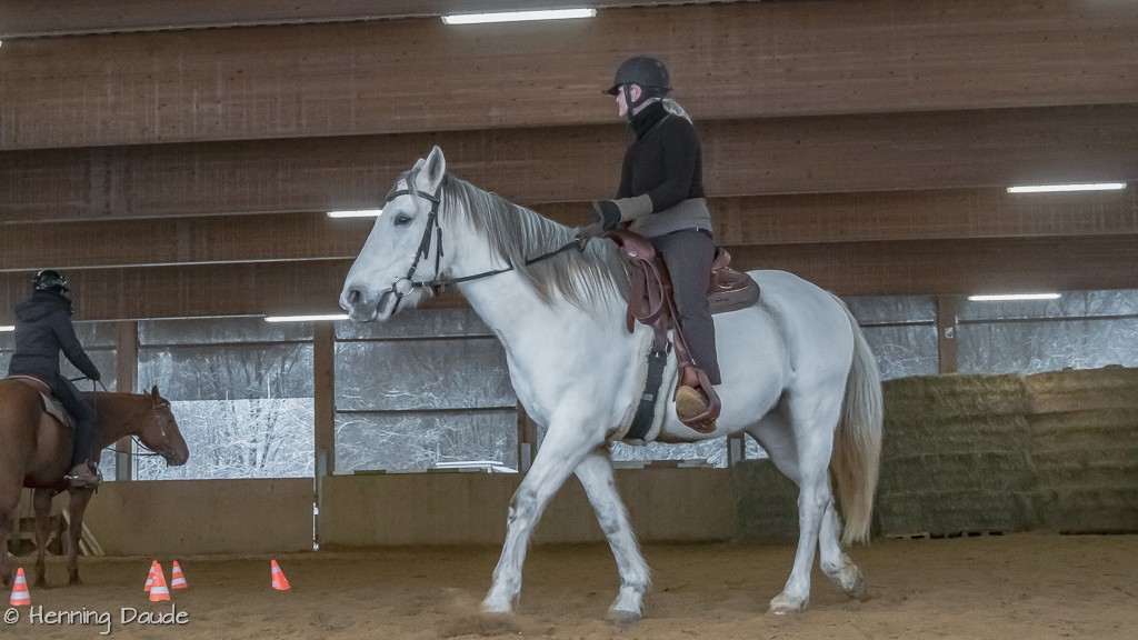 Schnee, Minusgrade und viel gute Laune erwartete uns beim ersten Kurs in diesem Jahr auf dem „Stungenhof“. Nachdem wir klären konnten, ob man ein Leihpferd anständig putzen muss und der erste Kauf eines Smartphones im Jahr 2019 etwas mit Gegenwartsverweigerung zu tun hat, machten wir uns an die wirklich wichtigen Aufgaben: Wir „überlebten“ Schreckecken, ritten Volten und Zirkel, verfeinerten die Schenkelhilfen und verbesserten die Balance der Pferde.
