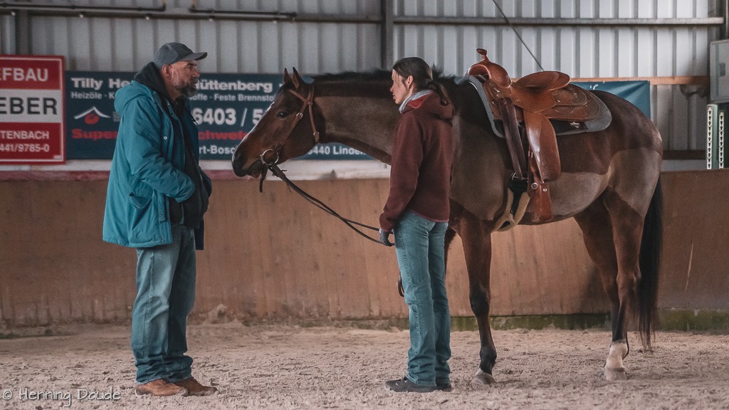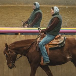 Das Karnevalswochenende fand diesmal in Mittelhessen statt, die Teilnehmer erschienen ohne Kostüm, aber verrückt nach den Ponys waren sie in jedem Falle. Seitengänge aller Art standen auf dem Programm, Hinter- und Vorderhandwendungen, Außen- und Innengalopp. Die Schenkelhilfen wurden verfeinert, die Zügelhilfen minimiert und das „Showgirl“ Nadja gerade hingesetzt.