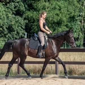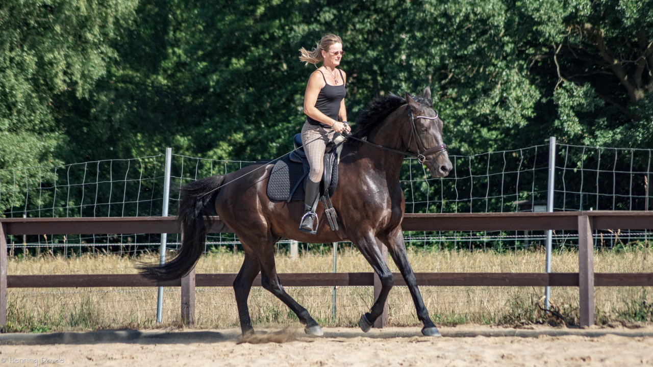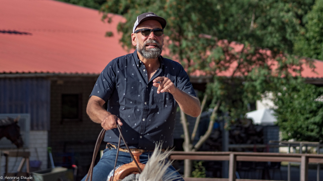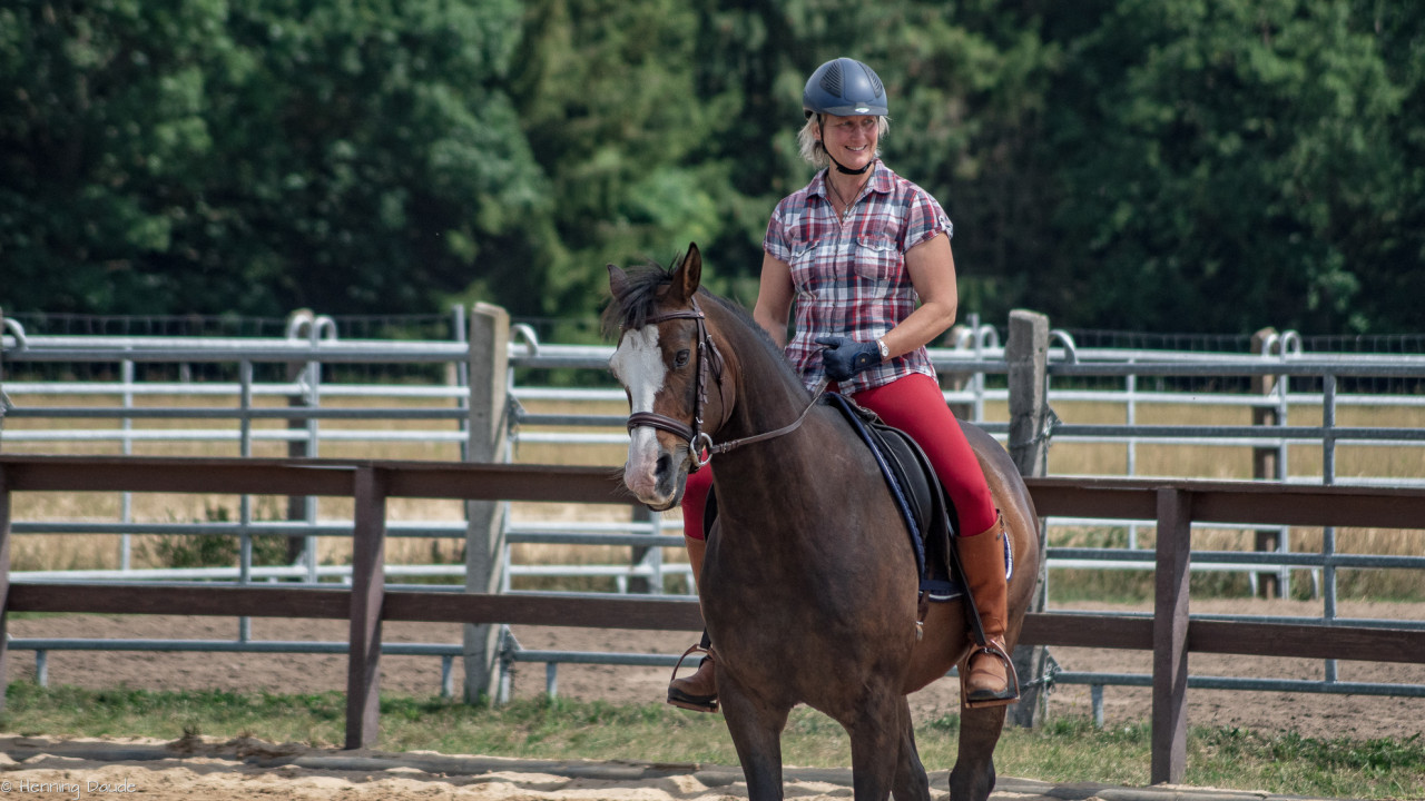 Gute Aussichten auf die Sommer-Kurs-Saison 2018: Siebenschläfer haben wir bei der „Banti-Cow Ranch“ bei knapp 30°C hinter uns gebracht, sodass die ausstehenden Outdoor-Kurse im Juli und August wohl ebenfalls bei strahlender Sonne stattfinden werden. Selbst bei diesen sommerlich-warmen Temperaturen ließen wir den nahegelegenen See links liegen und machten uns u.a. daran, den Takt herzustellen, Pirouetten zu verfeinern, fliegende Wechsel zu verbessern, Spins zu optimieren, Übergänge kontrolliert zu reiten sowie bei leckerem Essen und viel Spaß dem Motto „Innen- und Außengalopp leichtgemacht!“ gerecht zu werden.