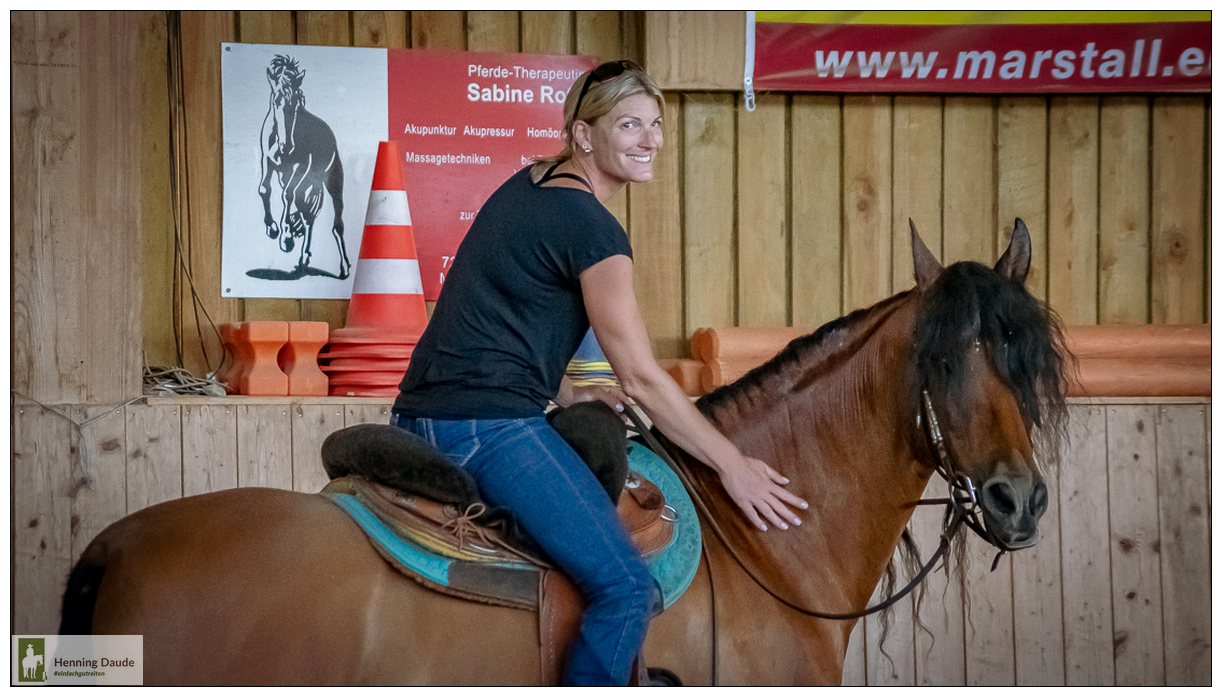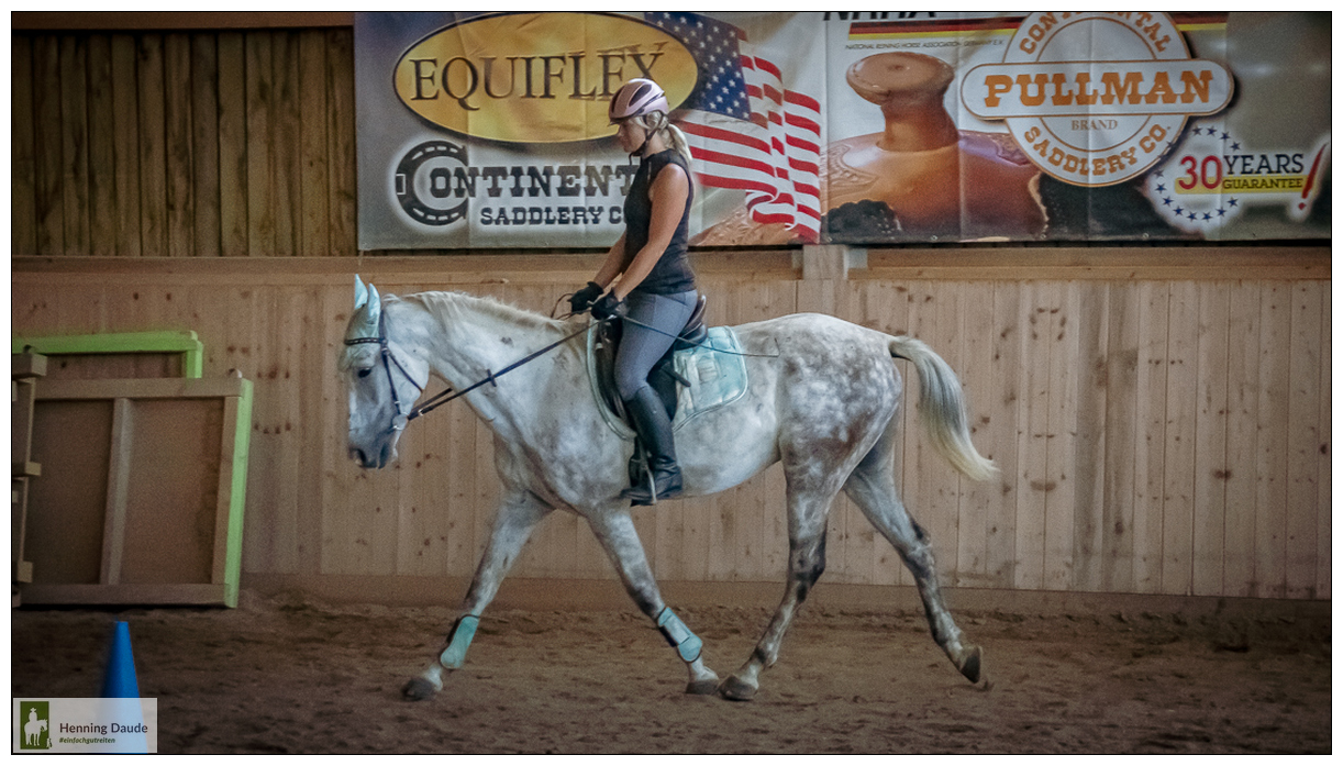 Unter dem Motto „Die Grenzen sind in unseren Köpfen“ hielten wir eine Art Klassentreffen bei „Trail Rider am Fuße des Schwarzwalds ab. Es war toll zu sehen, wie viele Fortschritte ihr gemacht habt – plötzlichen funktionieren, Sachen, die ihr nie für möglich gehalten habe, toll! Damit dieses Gefühl Bestand hat, haben wir diesmal am Außengalopp und einhändigen Reiten gearbeitet. Das Lenken wurde zügelunabhängig, das Warten an den Schenklehilfen wurde gepaukt und Biegen, Stellen und das Geradesitzen geübt.