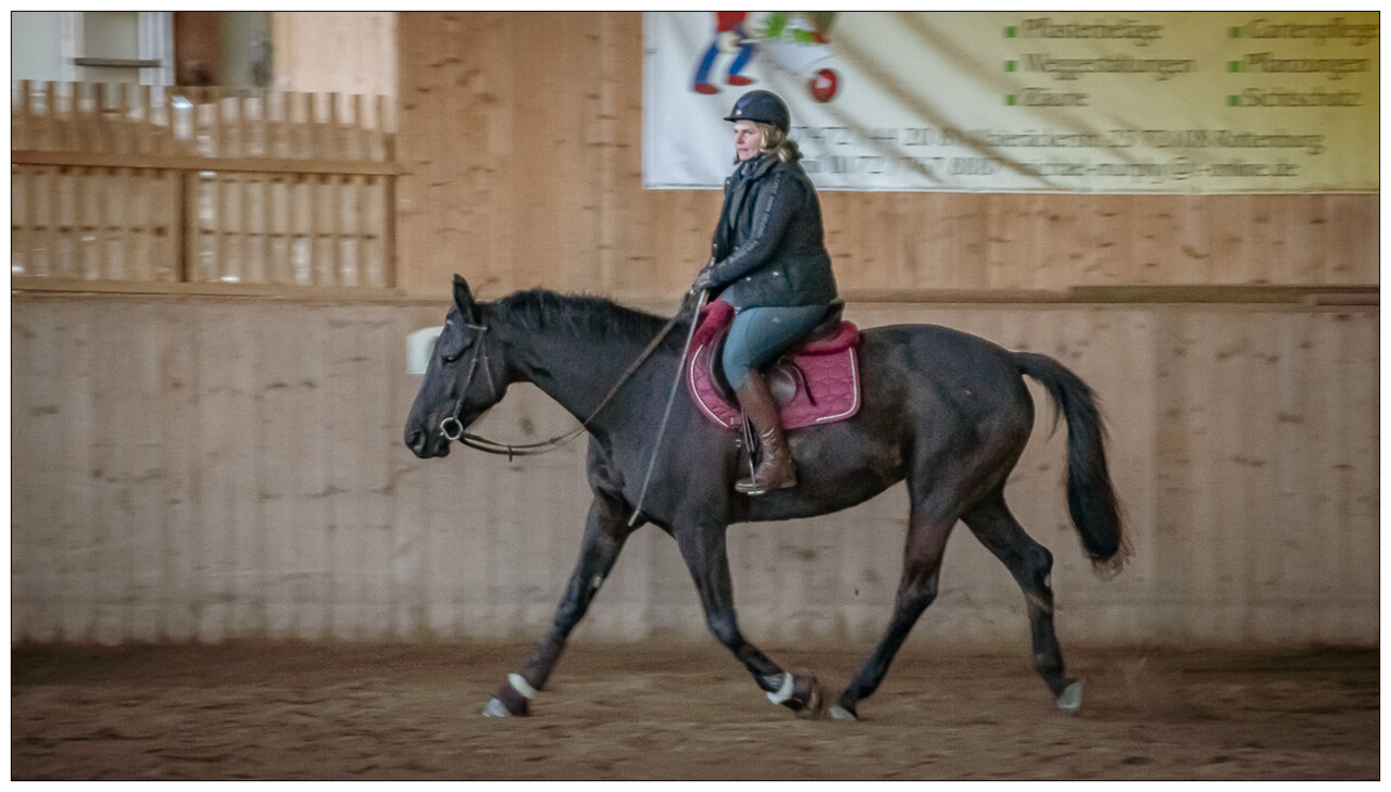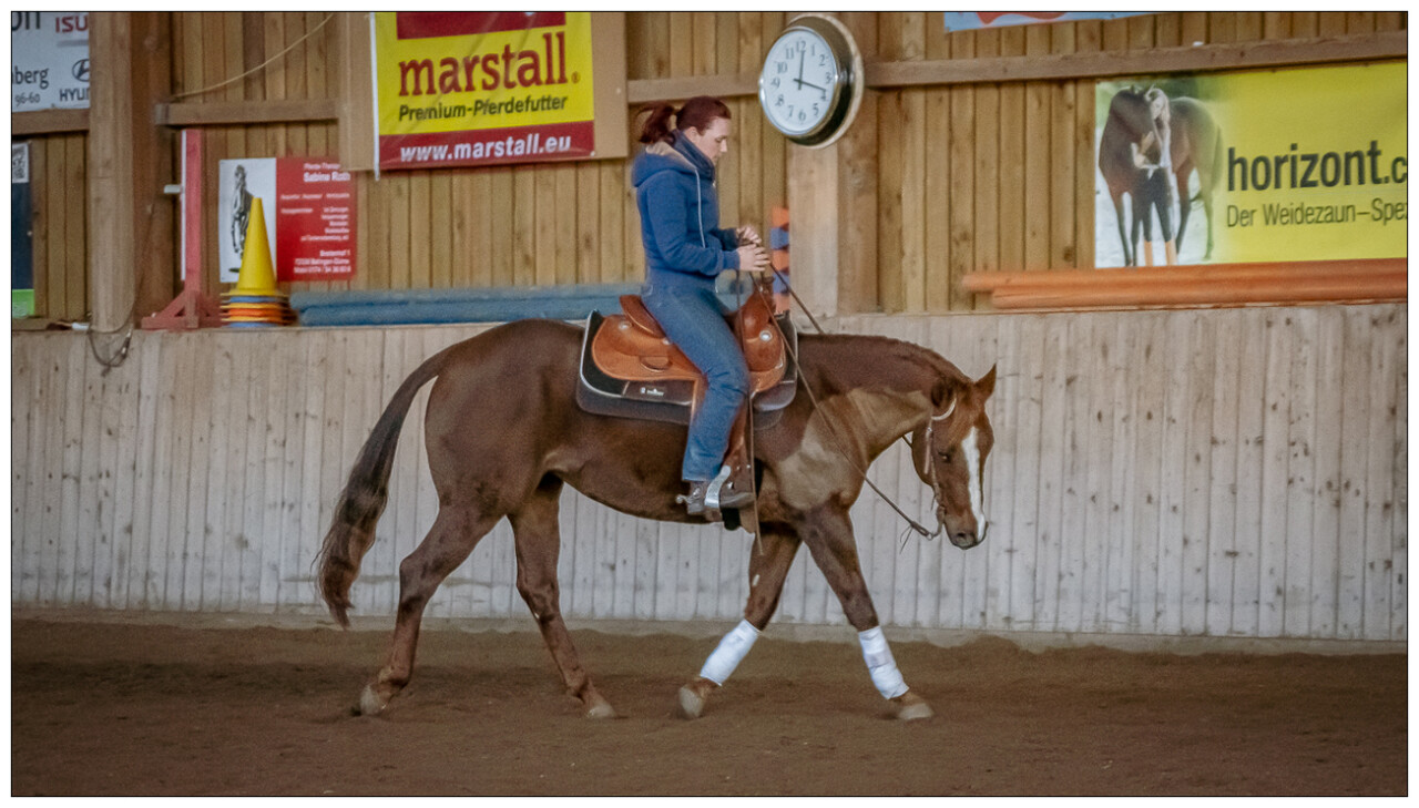 Mit viel Unterstützung aus der Schweiz und einem privaten Kurs für den Trainer (Wie verbessere ich mein Schwyzerdütsch?) widmeten wir uns den anstehenden Aufgaben und Fragen: Wie erreiche ich eine gute Ablehnung? Wodurch bekomme ich mehr Aufrichtung? Wie kann ich mein Pferd motivieren? Welche Übungen verbessern meinen fliegenden Wechsel? Nachdem alle Fragen ihre passenden Antworten bekommen haben, blieb uns nur noch, Juliane und Elke diesmal schmerzlich zu vermissen und die Hoffnung, dass wir uns alle im Juni wiedersehen.